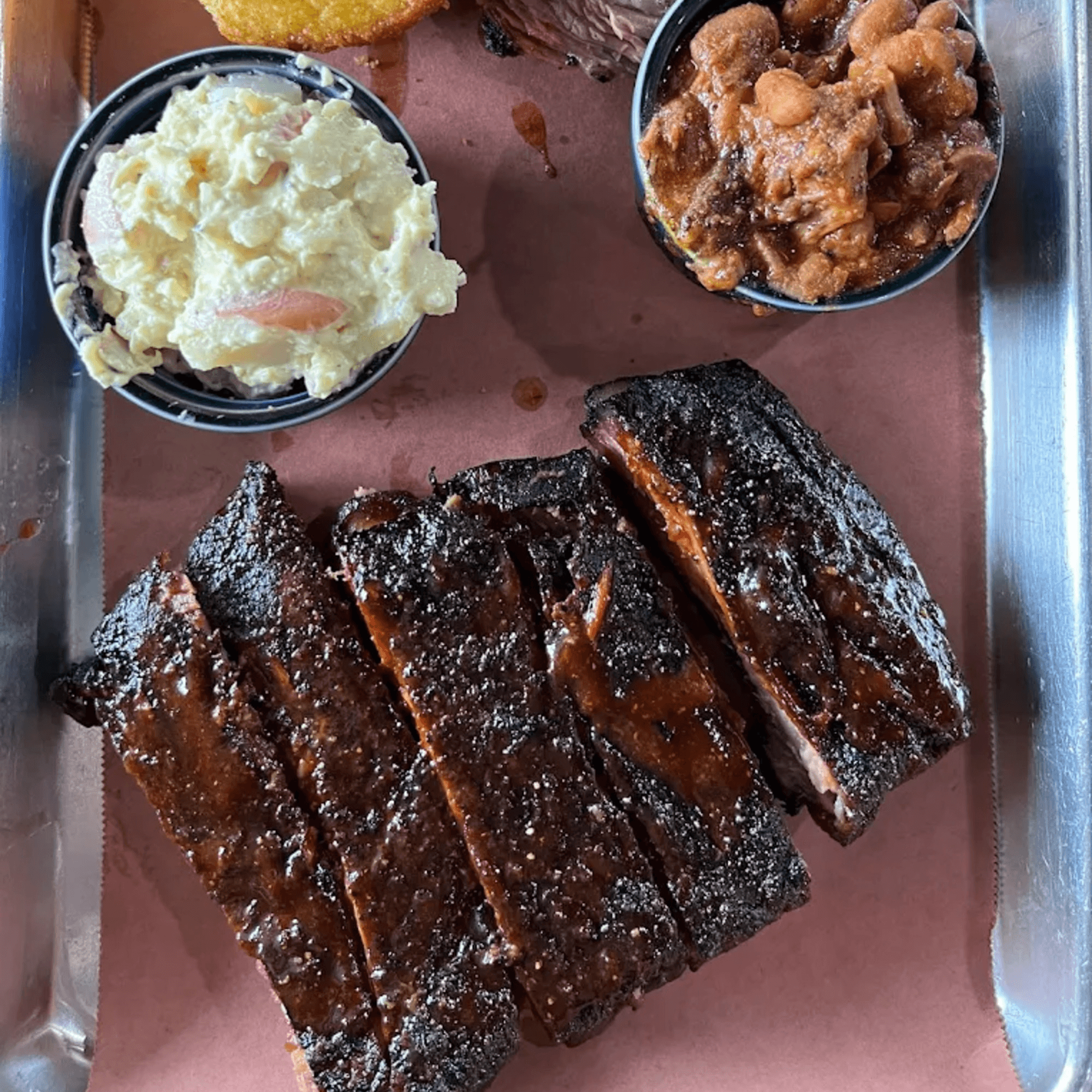A closer look at our smoked meats, sides, and desserts served fresh every day. 🍖